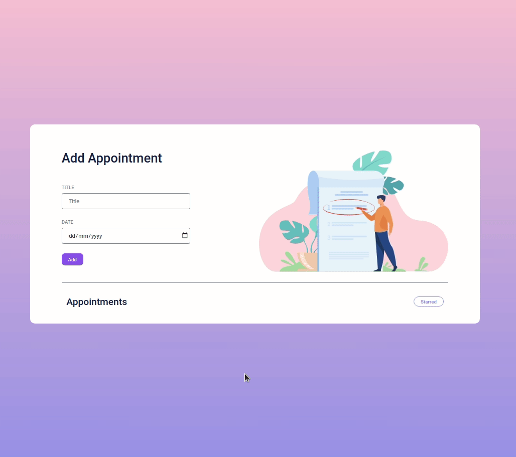 - Initially, the list of appointments should be empty and the title input and date input should be empty